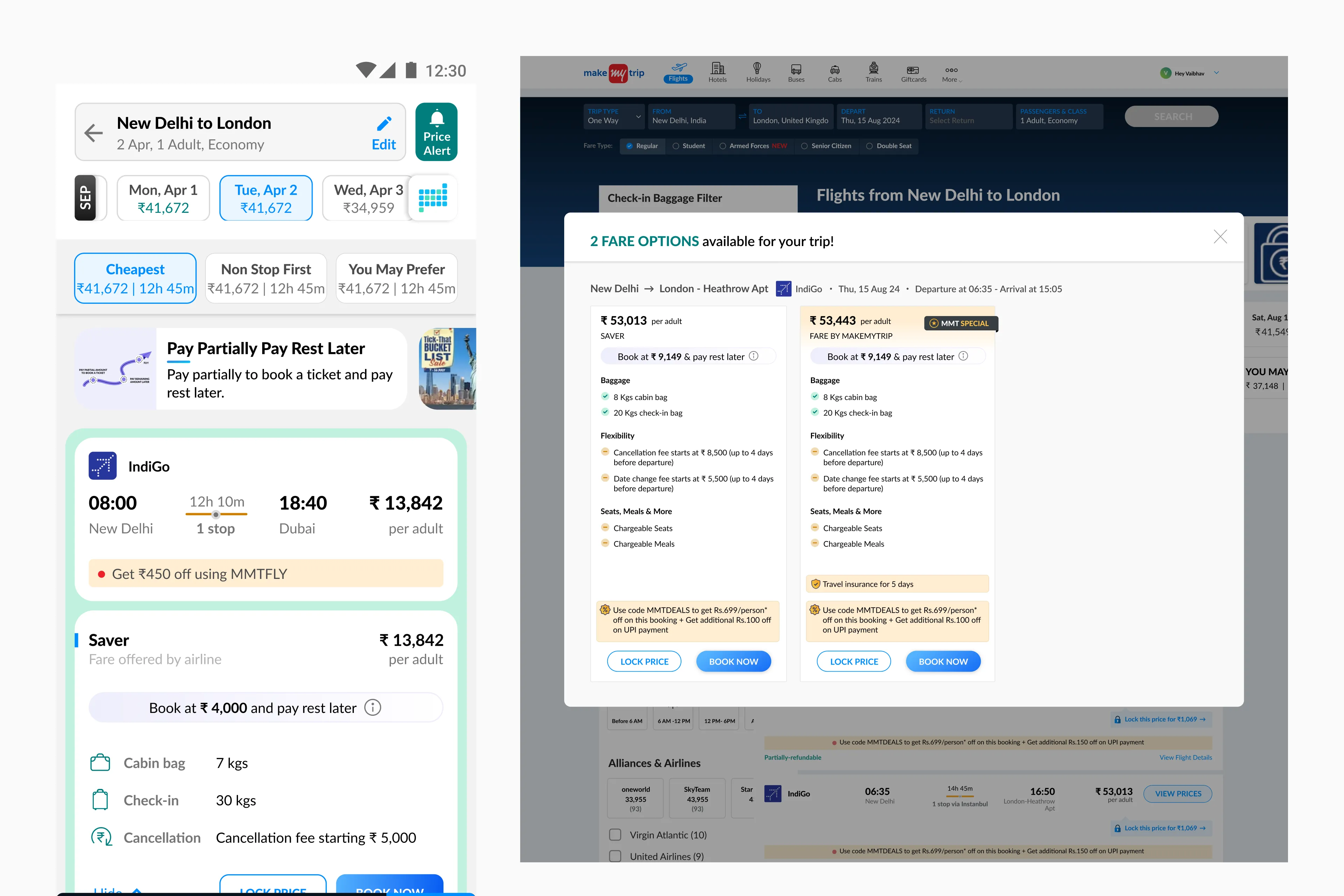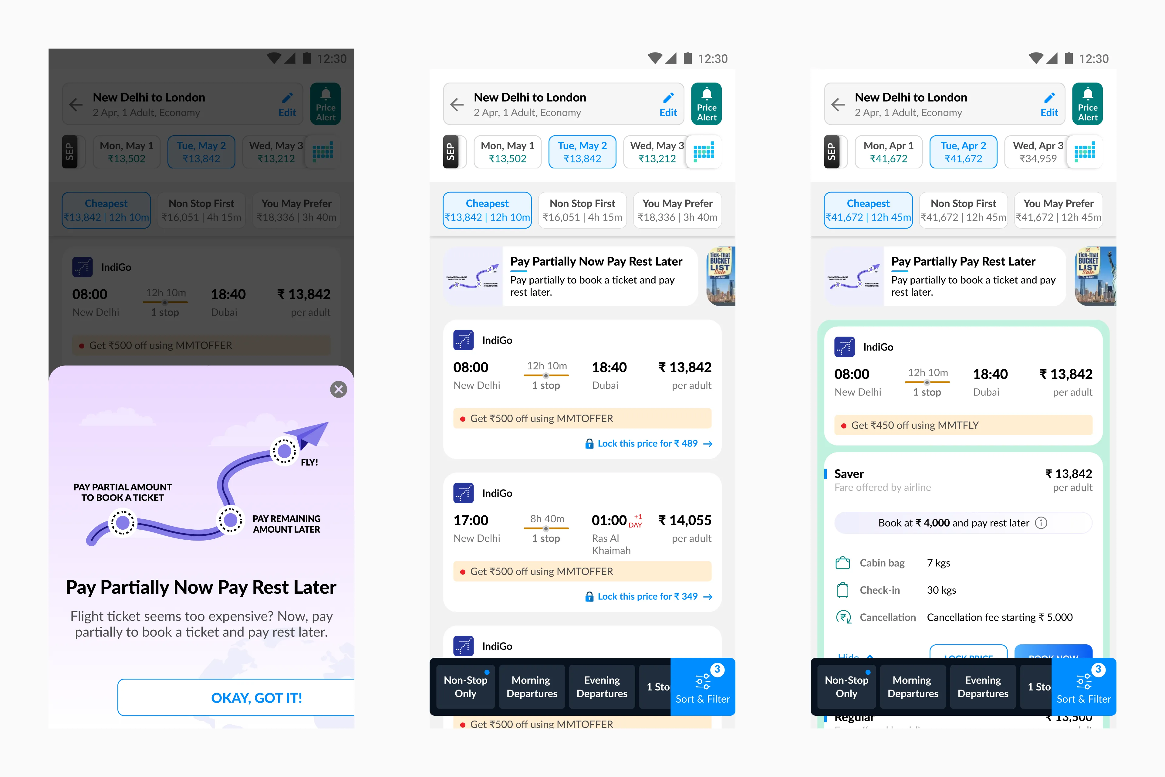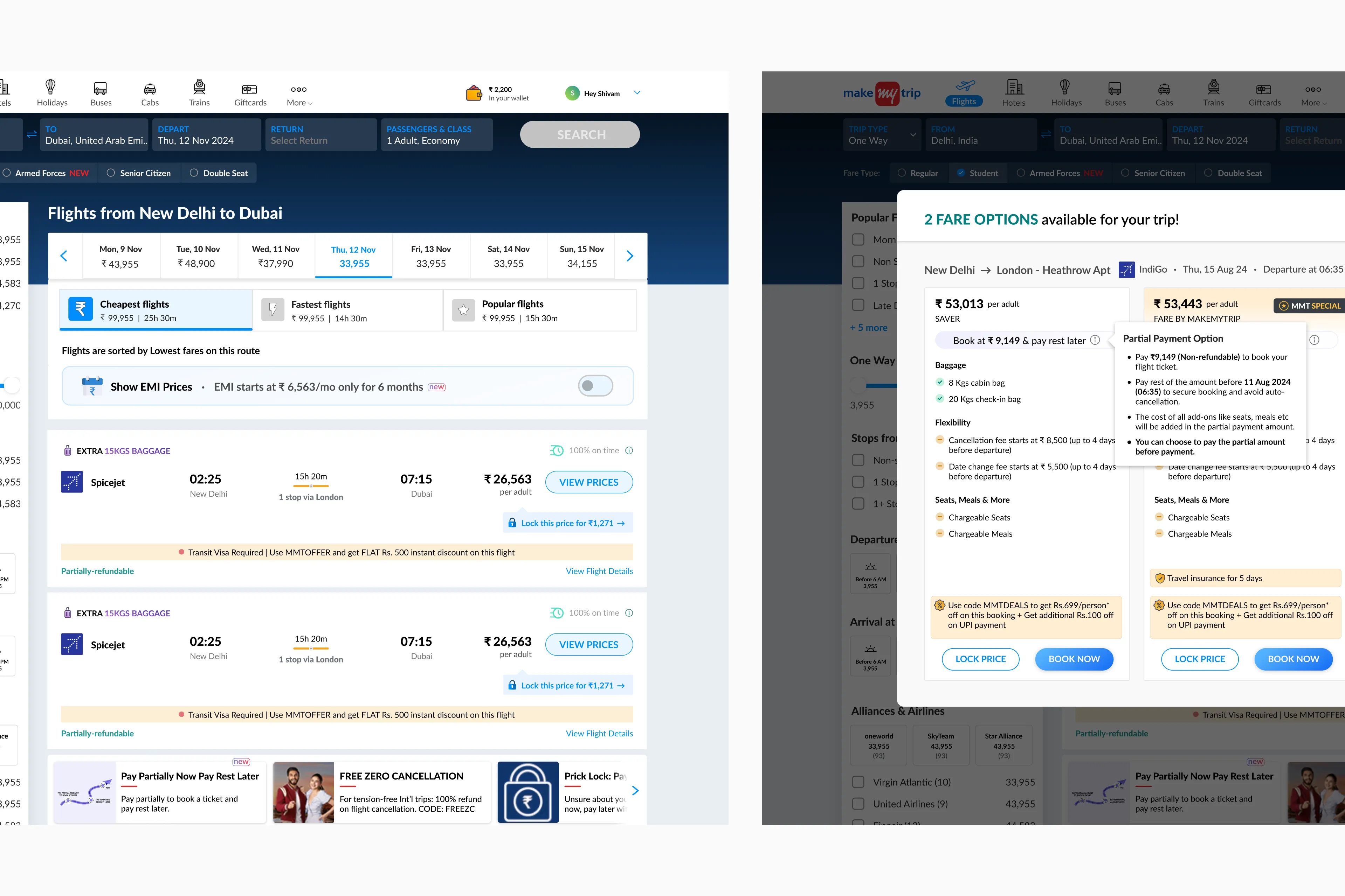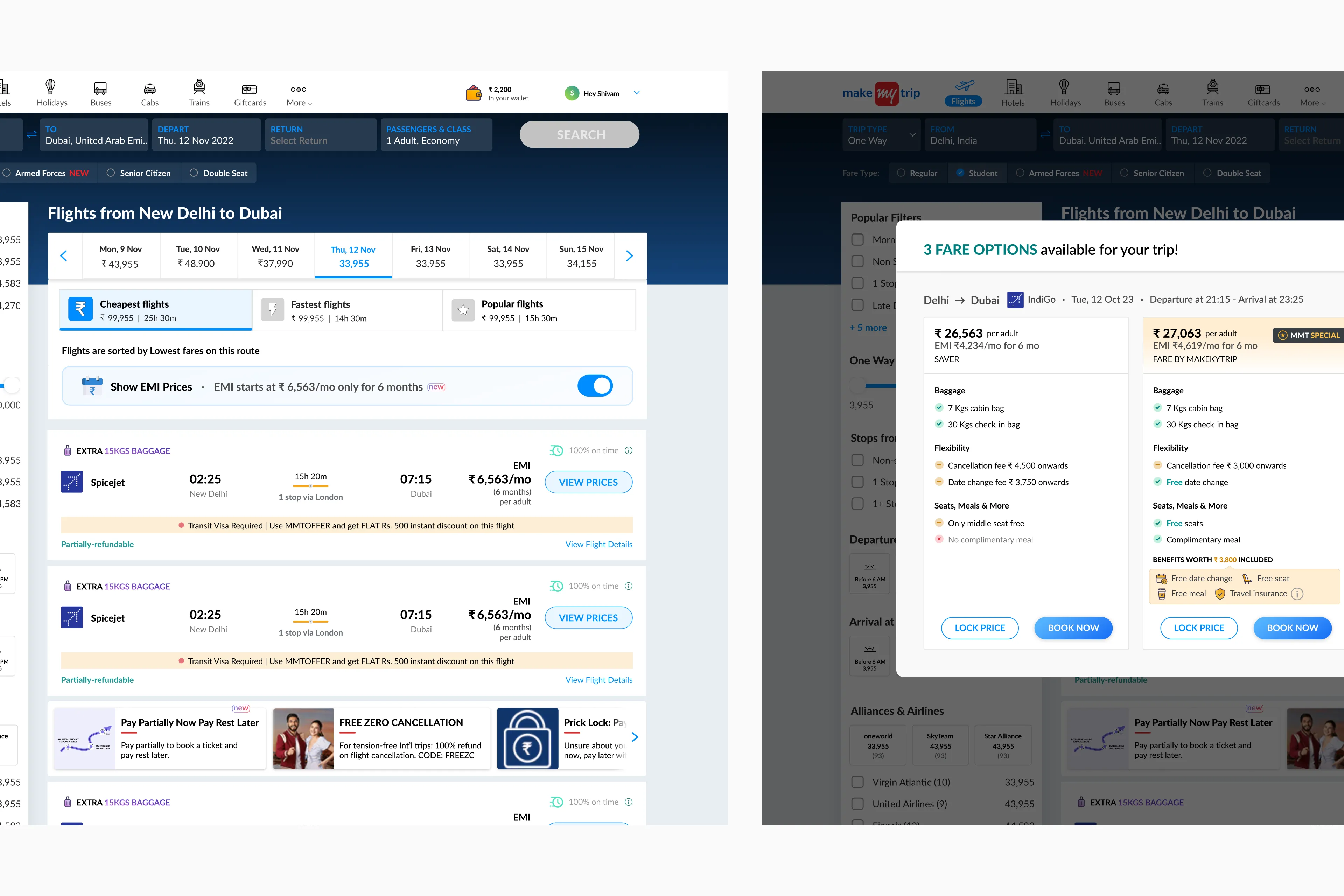 Trade-off: We chose not to show this feature on the flights listing cards on the listing page to avoid clutter and user confusion on the already busy page, which also includes the EMI feature.