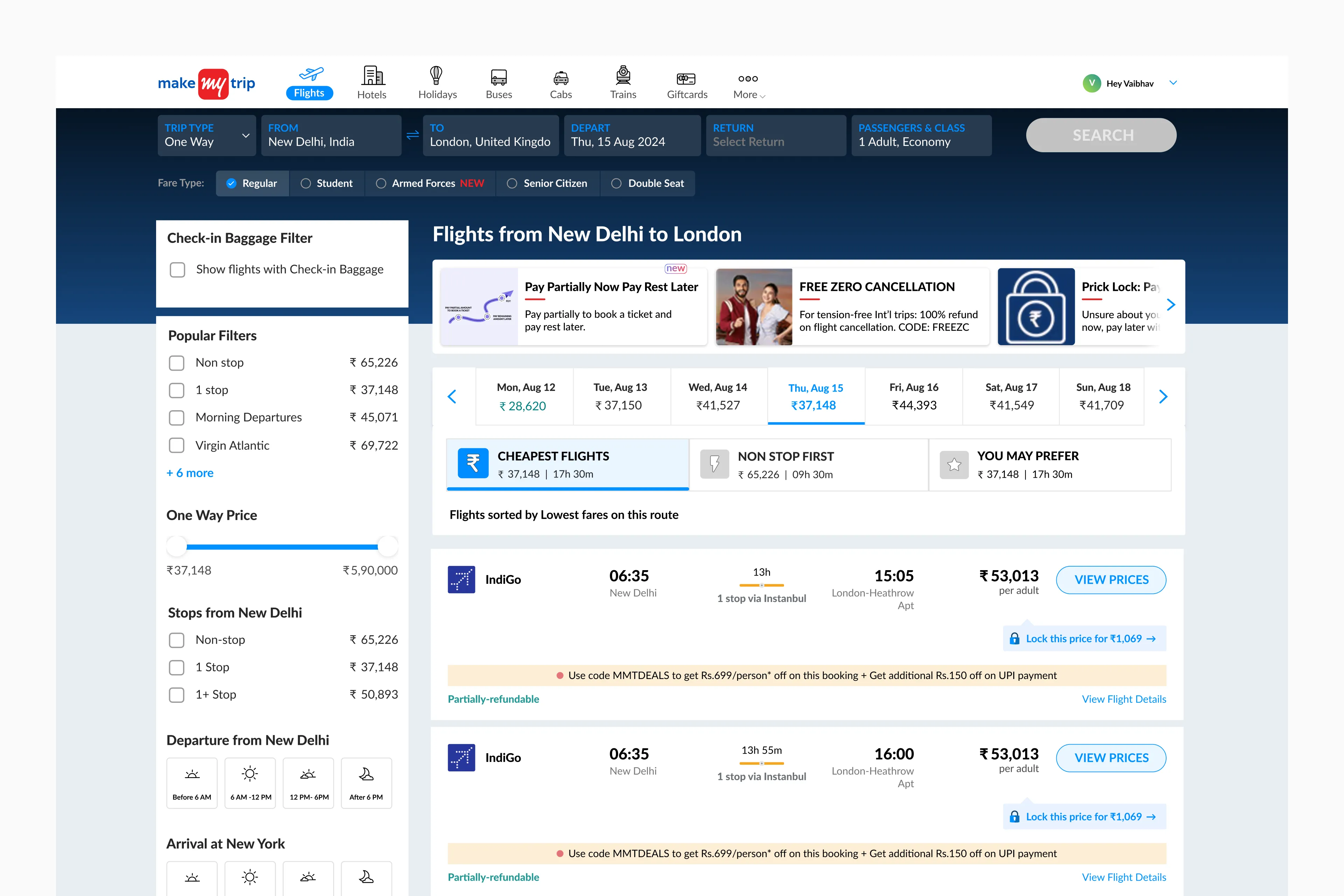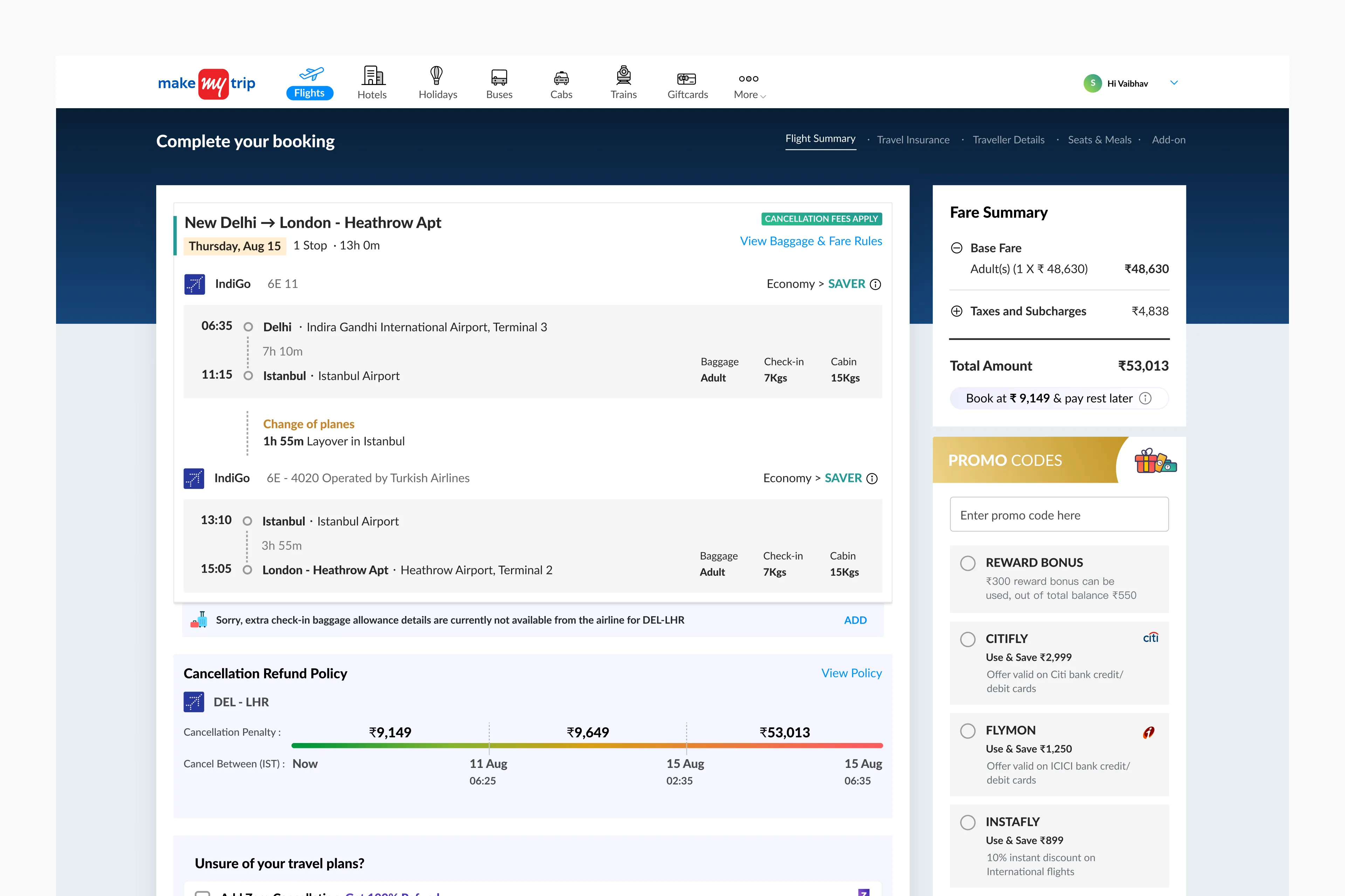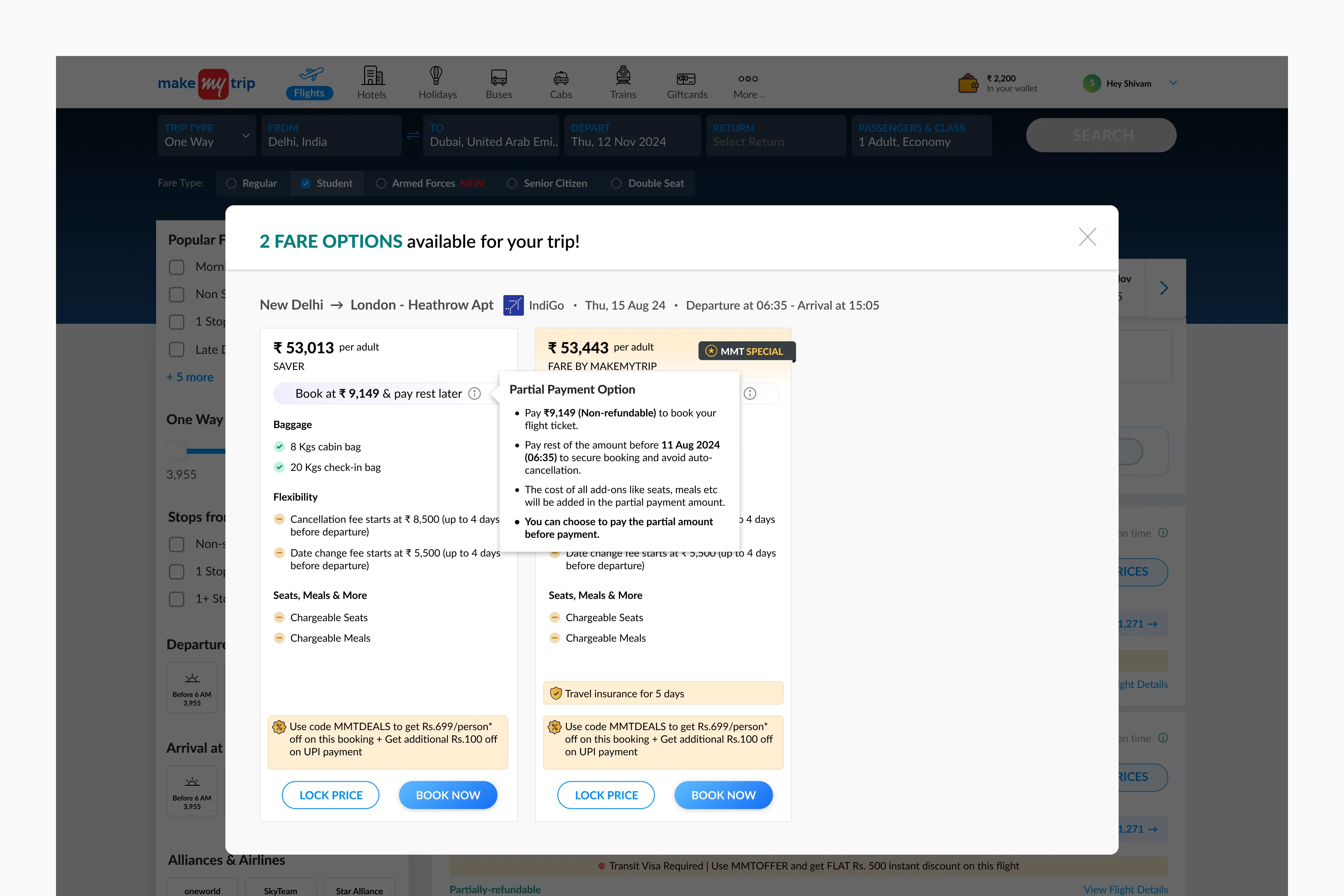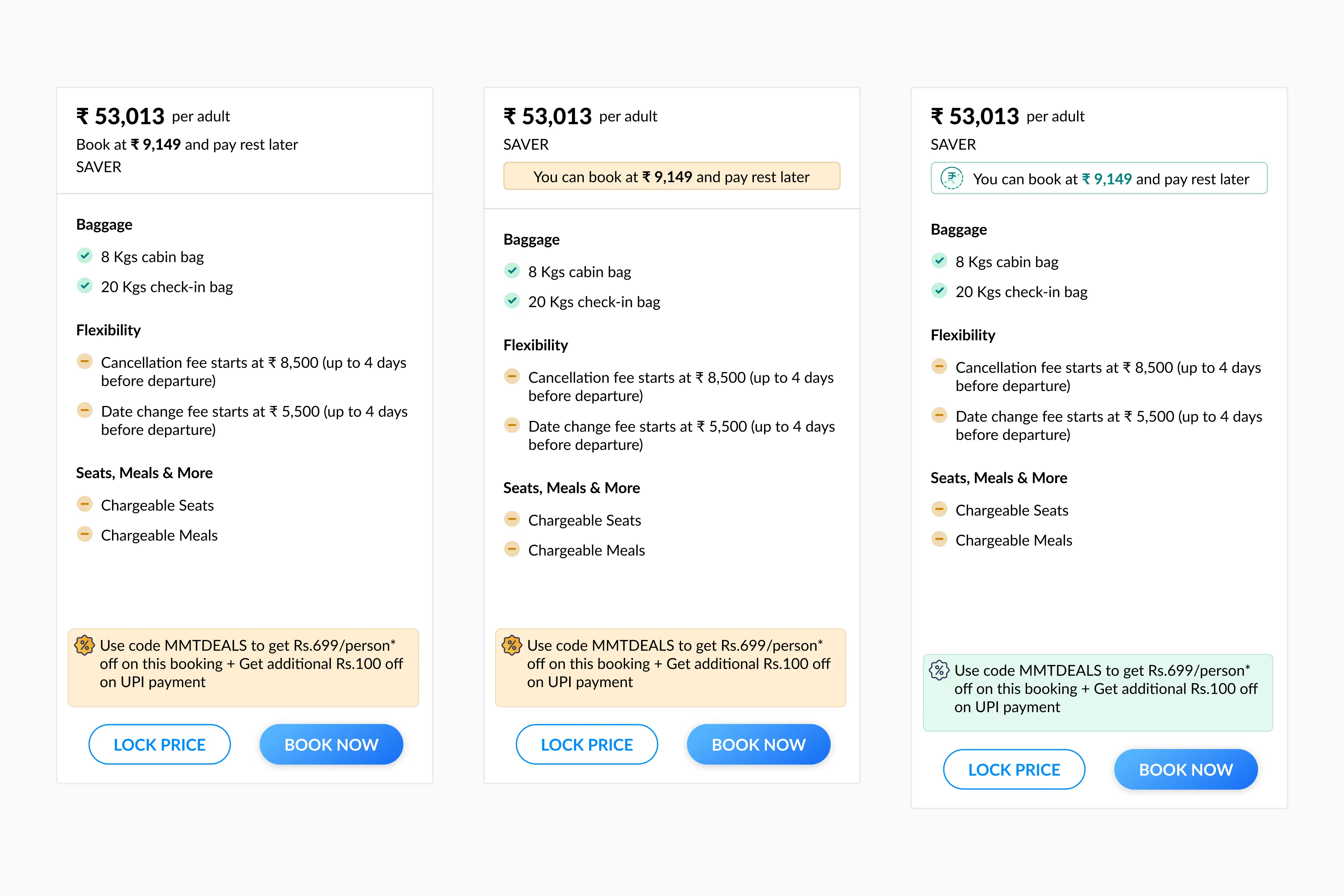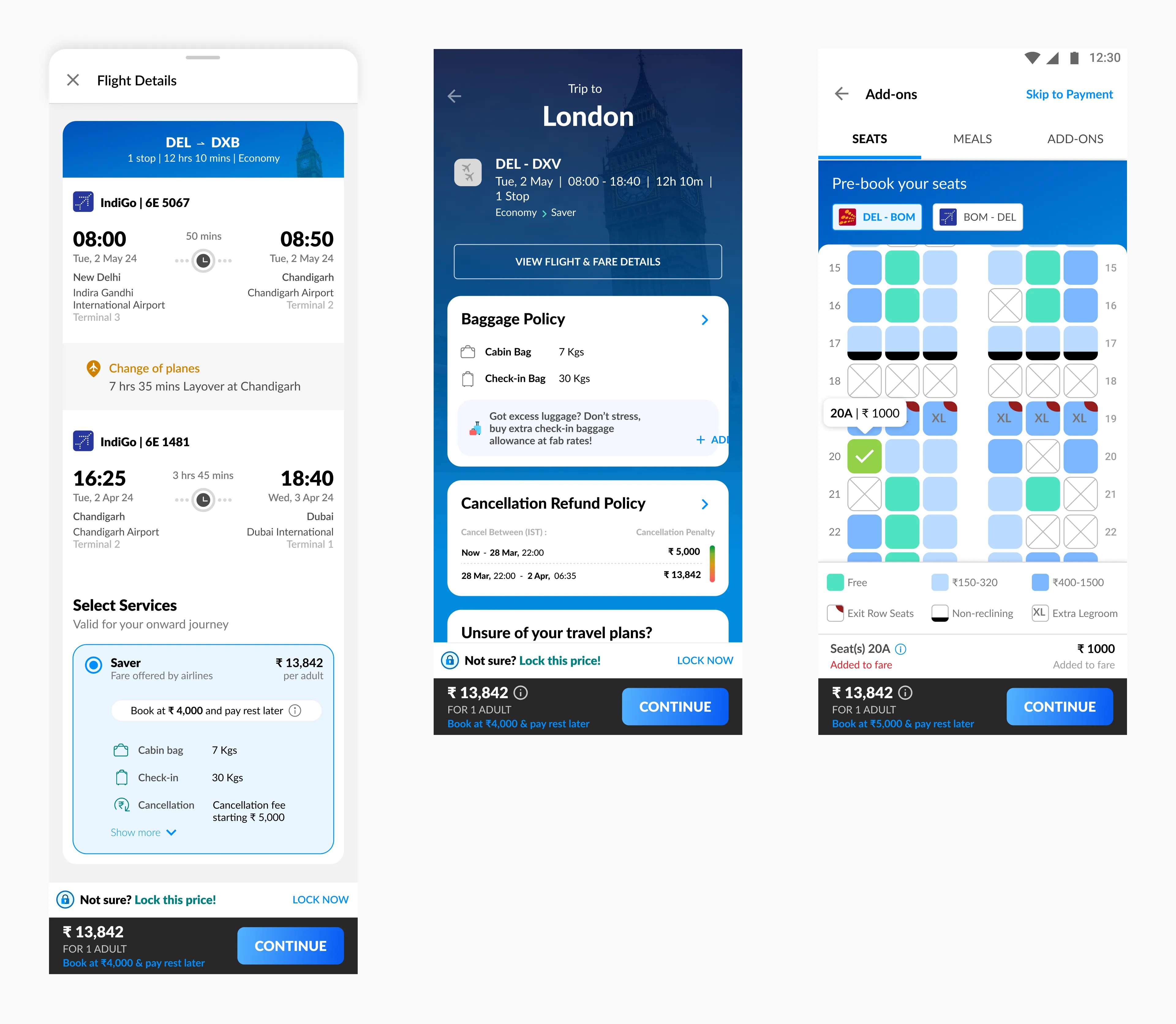 Trade-off: We chose not to show this feature on the flights listing cards on the listing page to avoid clutter and user confusion on the already busy page, which also includes the EMI feature.