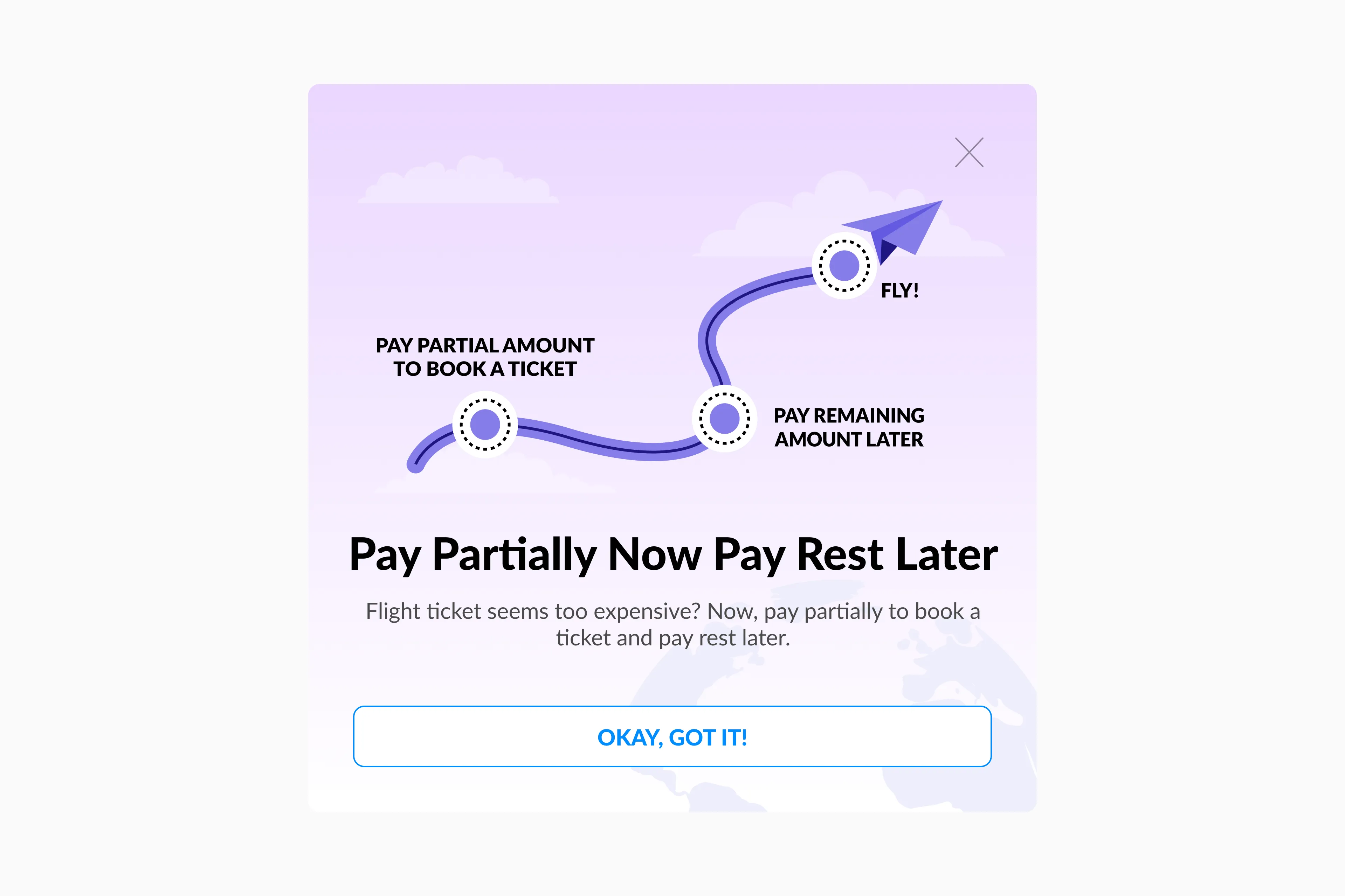 Imagine you’re booking a flight ticket from Delhi to London but the total fare is going out of your current budget. What if we surprise you, “pay a fraction of total fare now and pay the rest later. Wouldn’t that be affordable and great?